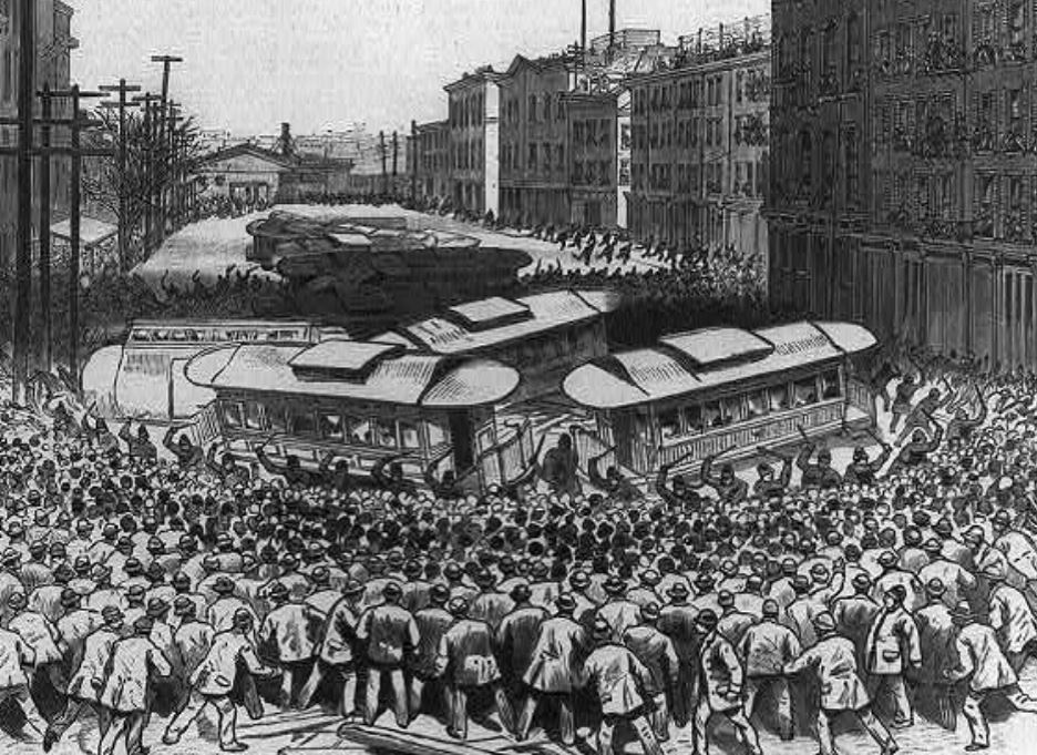 Other struggles found hope in labor’s militancy. The collapse of Reconstruction took back many of black Americans’ social, political, and economic gains and allowed new forms of institutional racism to develop. The fight for women’s suffrage — spurred by emancipation — was temporarily defeated. This all translated into struggle, and the last decades of the nineteenth century erupted into strikes, riots, and mass protest.
